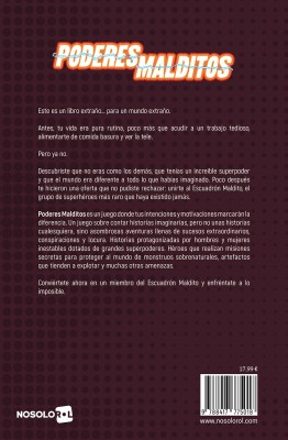 Poderes Malditos es un juego donde tus intenciones y motivaciones marcarán la diferencia. Un juego sobre contar historias imaginarias, pero no unas historias cualesquiera, sino asombrosas aventuras llenas de sucesos extraordinarios, conspiraciones y locura. Historias protagonizadas por hombres y mujeres inestables dotados de grandes superpoderes. Héroes que realizan misiones secretas para proteger al mundo de monstruos sobrenaturales, artefactos que tienden a explotar y muchas otras amenazas. Poderes Malditos usa un sistema propio con dados escalados.