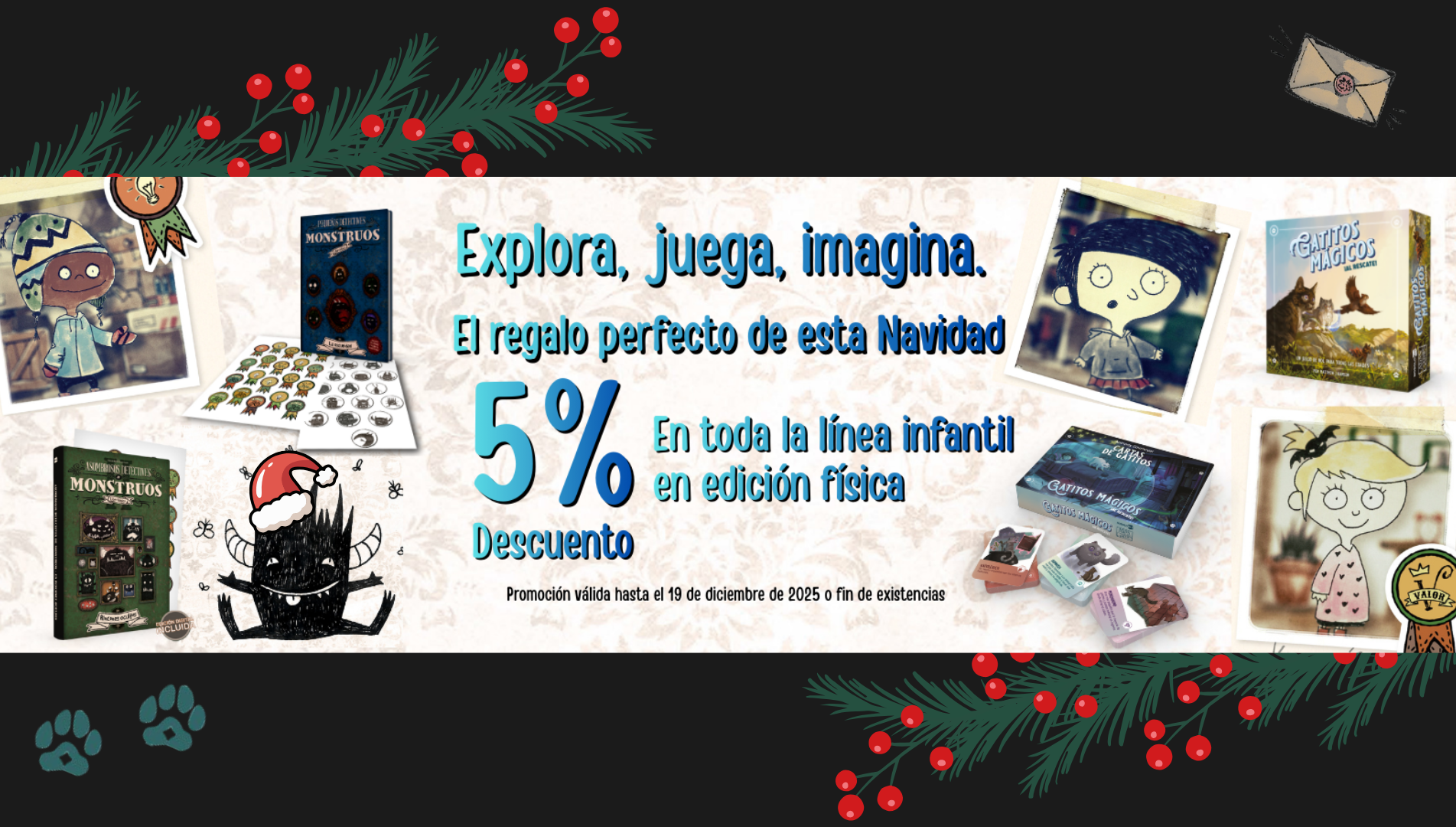 Si estabas pensando en hacer un regalo especial, único y diferente estas fiestas o en ampliar su biblioteca fantástica, este es el mejor momento. Toda la línea de juegos de rol infantiles y familiares, en formato físico, tiene un 5% de descuento hasta el 19 de diciembre.